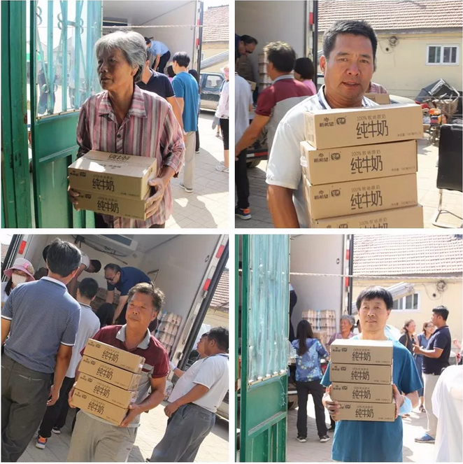 一方有難八方支援,災(zāi)難發(fā)生后中國奶業(yè)公益群向群內(nèi)發(fā)出倡議,呼吁自愿參與為災(zāi)區(qū)奉獻(xiàn)愛心,奶業(yè)各企業(yè)紛紛行動起來,共收到86家企業(yè)和個人的愛心善款。災(zāi)區(qū)人民恢復(fù)家園最需要的是溫飽和健康。9月8日,中國奶業(yè)公益群代表、山東健源生物邢燭等愛心人士攜手新希望乳業(yè)的相關(guān)人員到壽光市上口鎮(zhèn)趙王南樓后村,為災(zāi)區(qū)人民送去愛心牛奶物資,為受災(zāi)群眾提供營養(yǎng)補(bǔ)給,幫助受災(zāi)群眾重建美好家園。