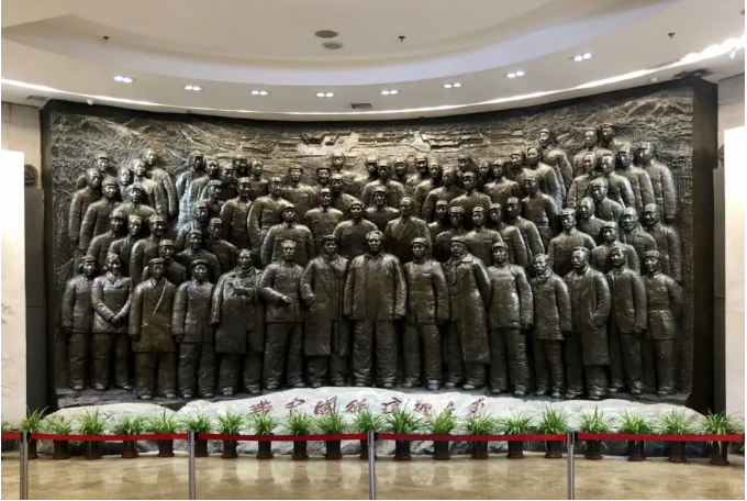 走進(jìn)西柏坡紀(jì)念館,首先映入眼簾的是“新中國從這里走來”大型銅雕,老一輩革命家群像栩栩如生,堅定的姿態(tài)、磅礴的氣勢,仿佛整個都是用意志和執(zhí)著鑄造的,爆發(fā)出蓬勃的力量。