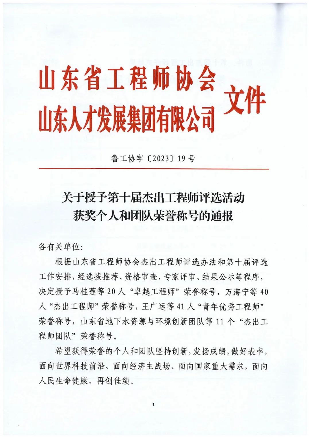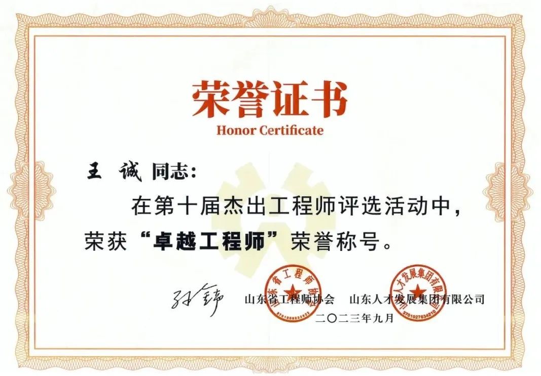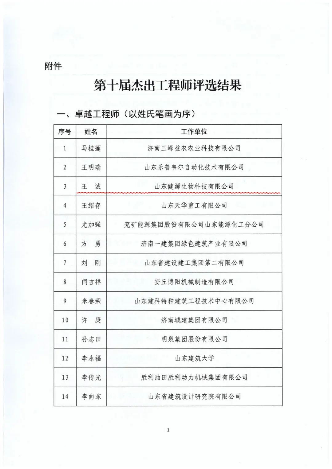 發(fā)布時(shí)間:[2023-12-20 8:8:46] 瀏覽量:3344次日前,由山東省工程師協(xié)會(huì)、山東人才發(fā)展集團(tuán)聯(lián)合舉辦的第十屆杰出工程師評(píng)選結(jié)果揭曉,山東健源生物科技有限公司董事長(zhǎng)王誠(chéng)榮獲“卓越工程師”稱 號(hào)。