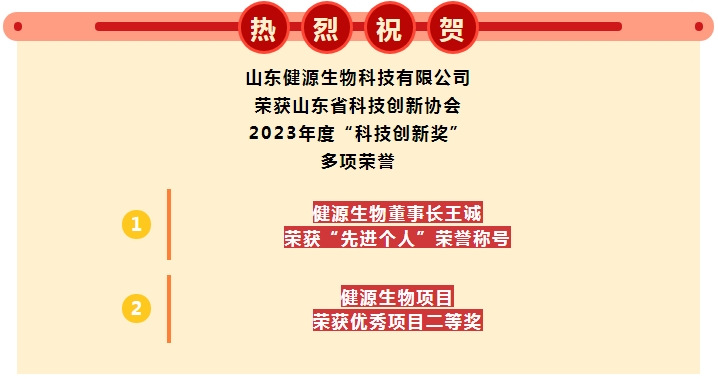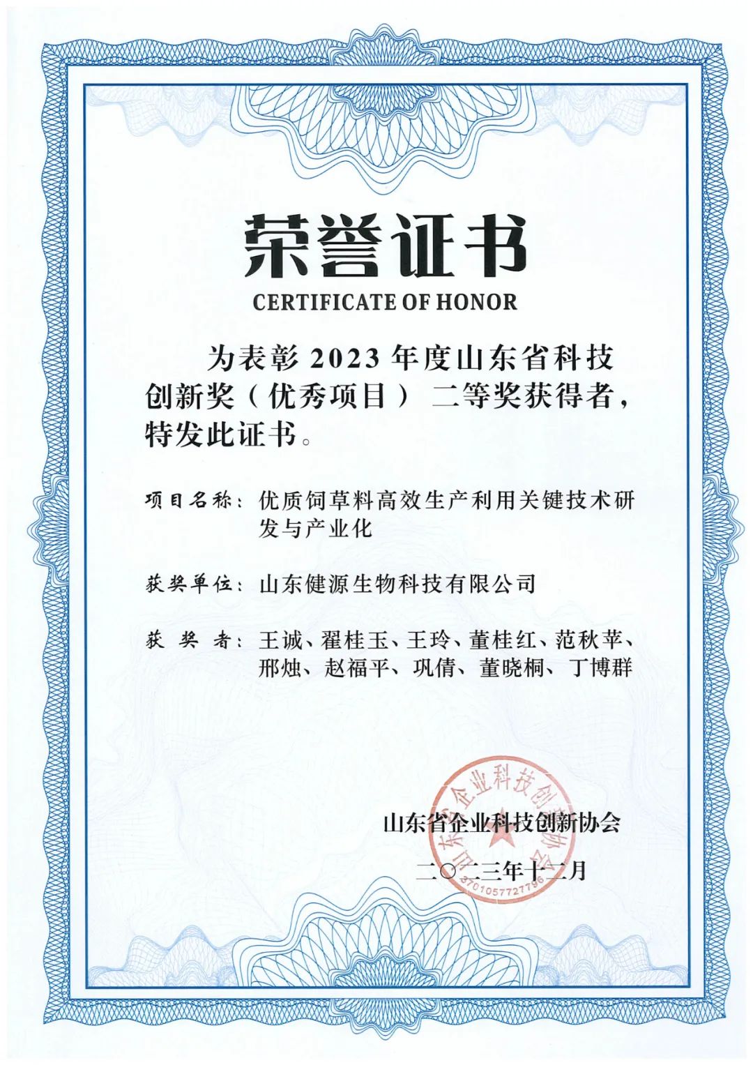 近日,山東省企業(yè)科技創(chuàng)新協(xié)會公布了《關(guān)于公示2023年度科技創(chuàng)新獎評審結(jié)果的決定》,山東健源生物科技有限公司董事長王誠被評為2023年度山東省科技創(chuàng)新獎先進(jìn)個人,《優(yōu)質(zhì)飼草料高效生產(chǎn)利用關(guān)鍵技術(shù)研究與產(chǎn)業(yè)化》項目榮獲山東省科技創(chuàng)新獎優(yōu)秀項目二等獎。