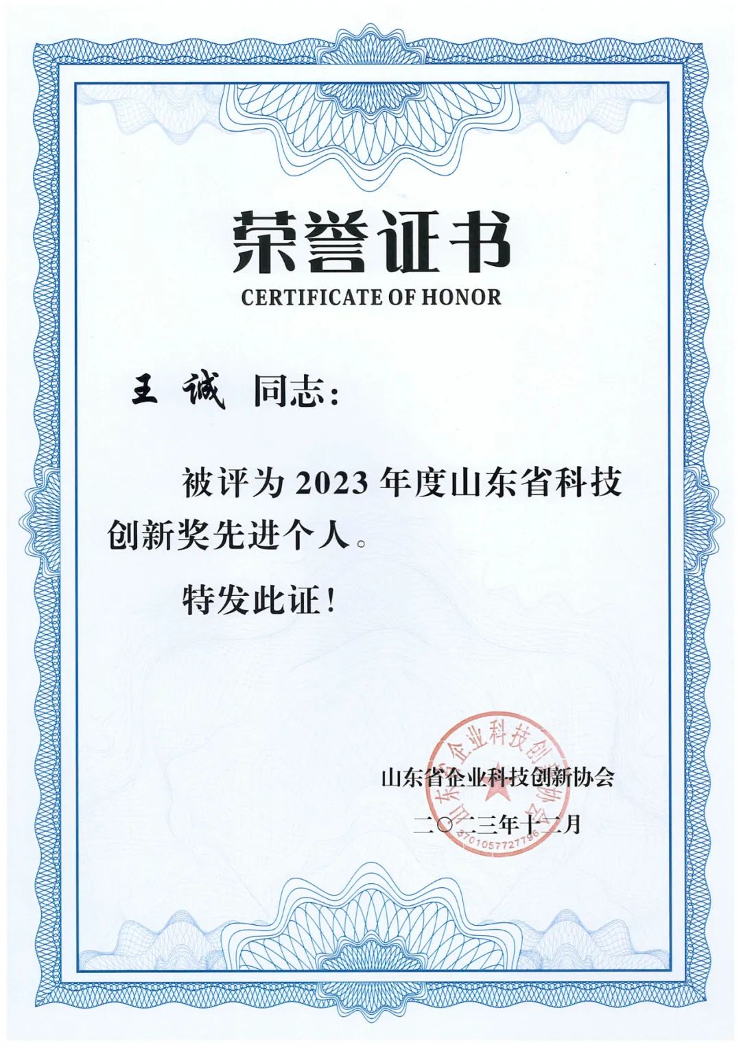 董事長王誠被評為山東省科技創(chuàng)新獎先進(jìn)個人