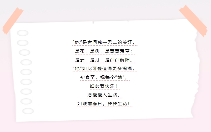 三月如歌,萬物齊吟。在這融融的春風(fēng)中,在這盈盈的笑意里,我們迎來了一個特屬于女性的節(jié)日——第114屆“三八國際婦女節(jié)”。在此,山東健源生物科技有限公司向廣大女性同胞致以最崇高的敬意!