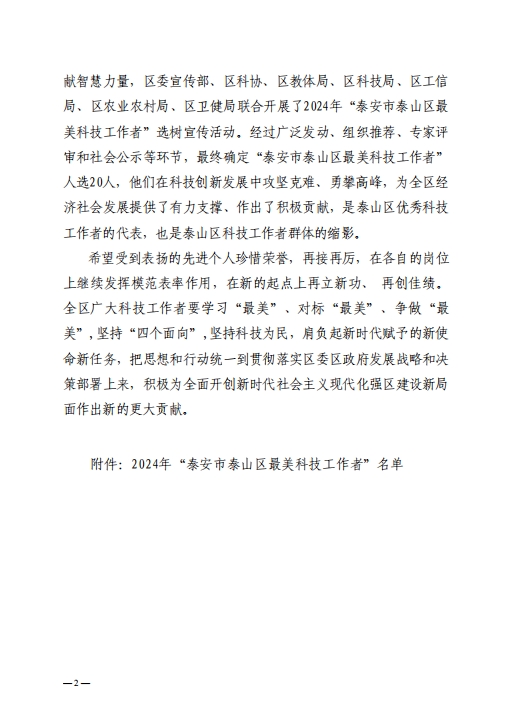 2024年泰安市泰山區(qū)“最美科技工作者”