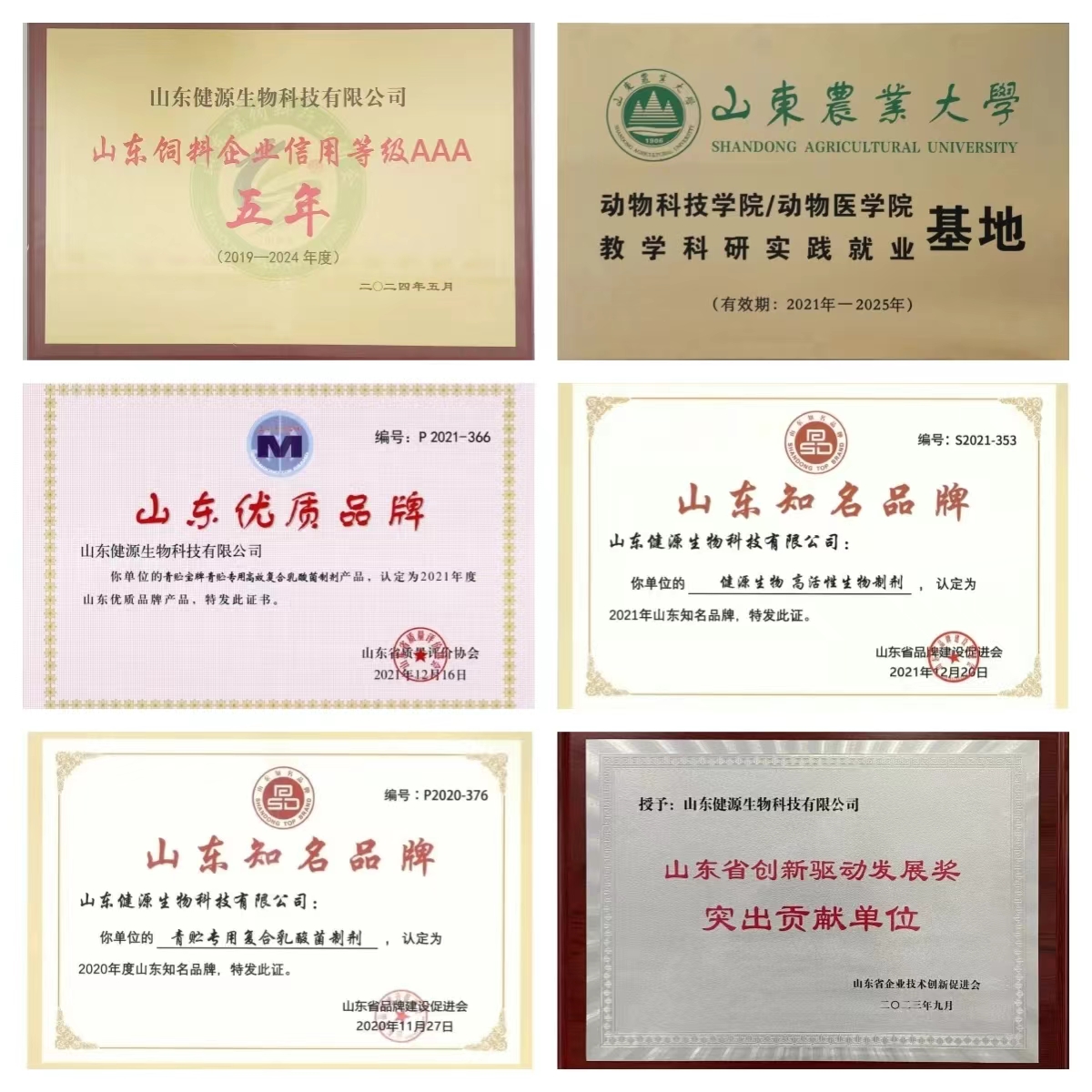 山東健源生物科技有限公司系國家高新技術(shù)企業(yè)、國家科技型中小企業(yè)、山東省瞪羚企業(yè)、山東省專精特新中小企業(yè)、山東省一企一技術(shù)研發(fā)中心、泰安市農(nóng)業(yè)產(chǎn)業(yè)化重點龍頭企業(yè)。公司深耕動物微生態(tài)行業(yè)十年,主攻動物類生物大健康產(chǎn)品,研發(fā)出三十多種高活性生物制劑產(chǎn)品,致力于以高科技生物技術(shù)保障動物健康,現(xiàn)已獲得國家知識產(chǎn)權(quán)局頒發(fā)的各類專利證書100余項,其中包括32項國家發(fā)明專利、3項國際發(fā)明專利,60余項實用新型專利、14項軟件著作權(quán),注冊商標(biāo)100多個,還有正在申請中的國家發(fā)明專利20余項,累計榮獲市級科技獎項7項,省級科技獎項30余項,部級科技獎項12項。
