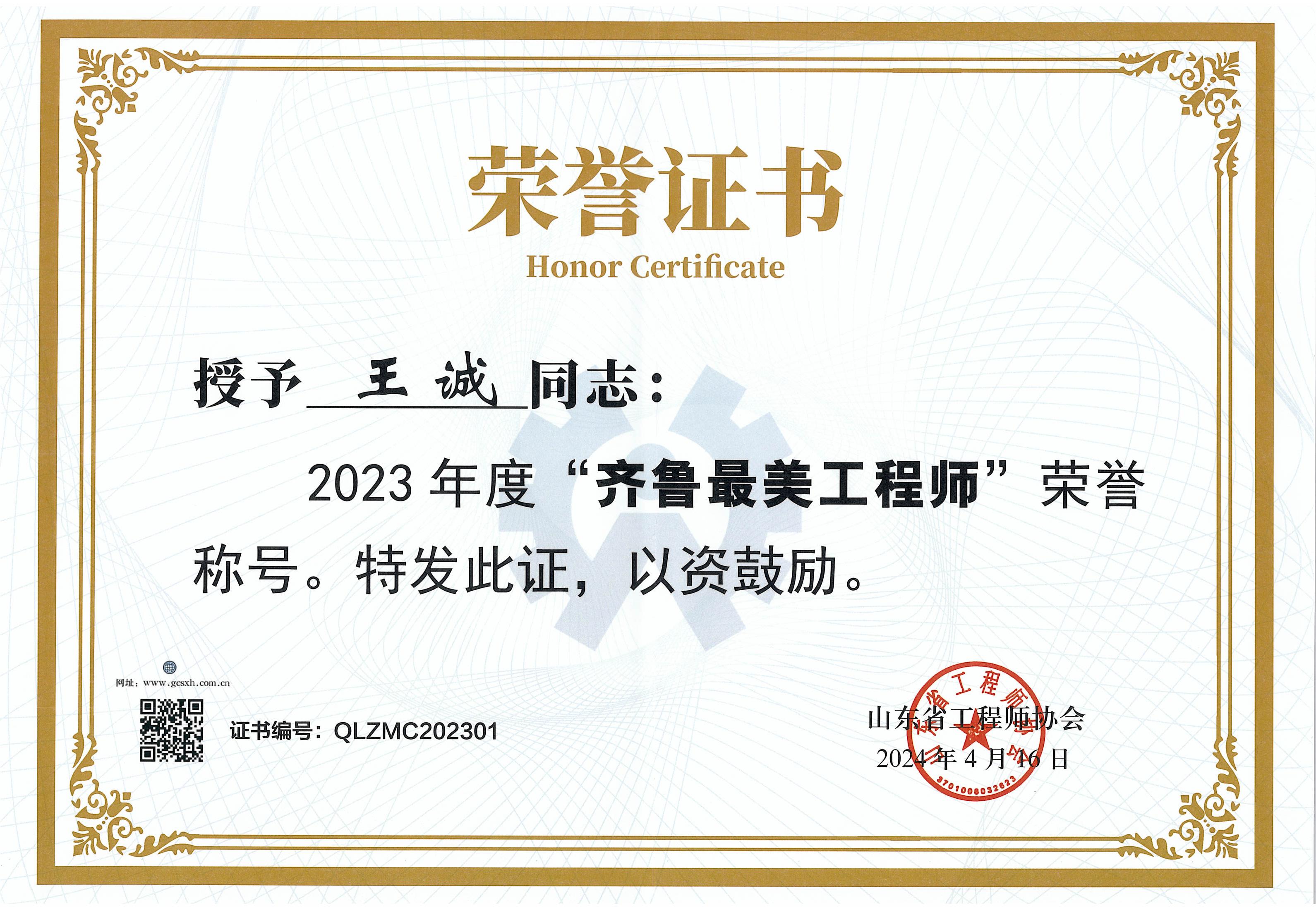 王誠董事長榮獲2023年度“齊魯最美工程師”榮譽稱號