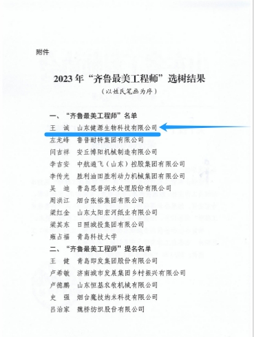 發(fā)布時間:[2024-7-5 15:51:56] 瀏覽量:3037次近日,山東省工程師協(xié)會下發(fā)關(guān)于授予2023年度“齊魯最美工程師”榮譽稱號的通報,山東健源生物科技有限公司董事長王誠被授予2023年度“齊魯最美工程師”榮譽稱號。