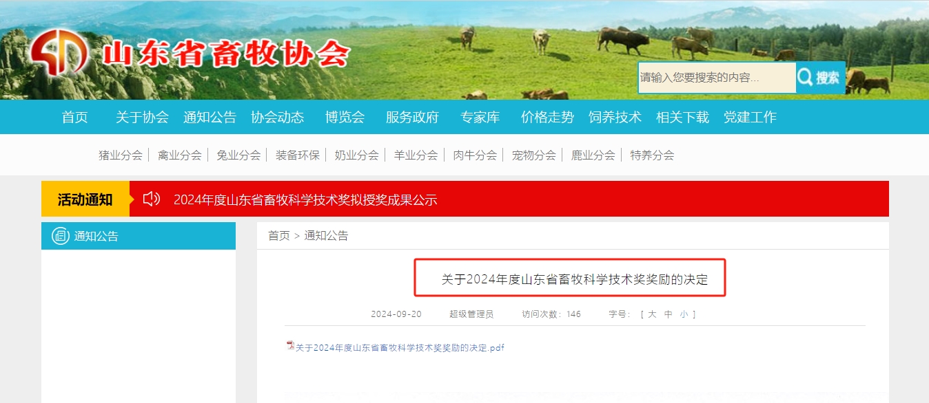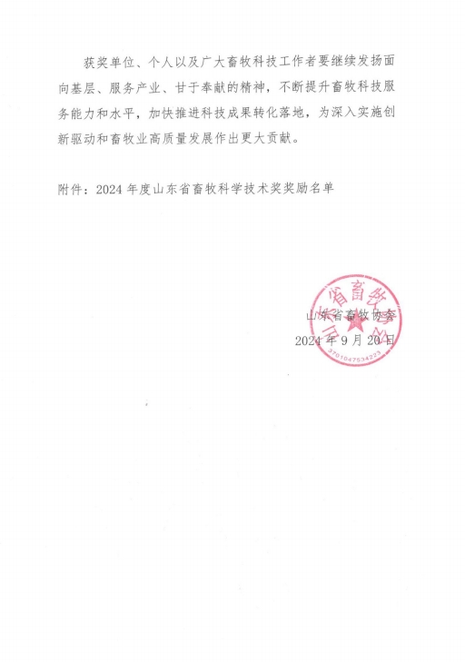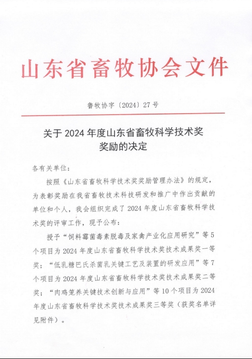 健源生物榮獲山東省畜牧科學(xué)技術(shù)獎科學(xué)技術(shù)成果獎一等獎