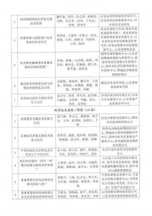 按照《山東省畜牧科學(xué)技術(shù)獎獎勵管理辦法》的規(guī)定,為表彰獎勵在我省畜牧技術(shù)科技研發(fā)和推廣中作出貢獻(xiàn)的單位和個人,經(jīng)過評審,評選出山東省畜牧科學(xué)技術(shù)獎技術(shù)成果獎一等獎5個,二等獎7個,三等獎10個。