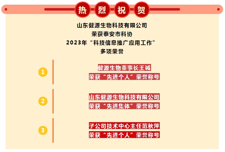 2024-1-10 健源生物榮獲泰安市科協(xié)多項(xiàng)榮譽(yù)