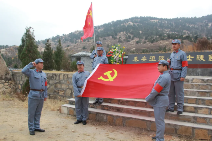 青山默默,松濤陣陣,在莊嚴(yán)肅穆的泰安徂徠山烈士陵園前,向革命英烈敬獻(xiàn)花籃,緬懷革命先烈。面對鮮紅的黨旗,全體共產(chǎn)黨員重溫入黨誓詞,做出莊嚴(yán)宣誓。