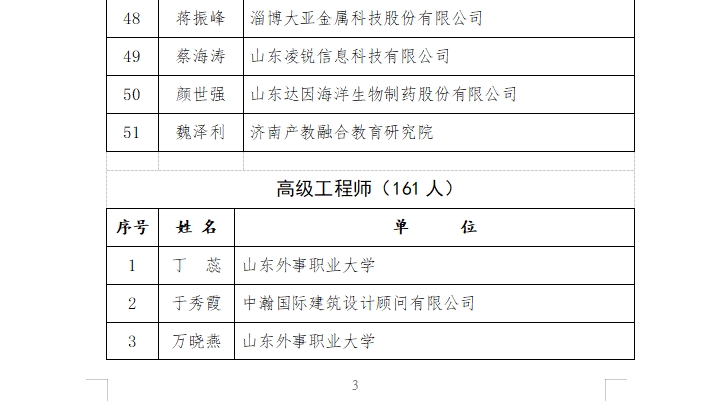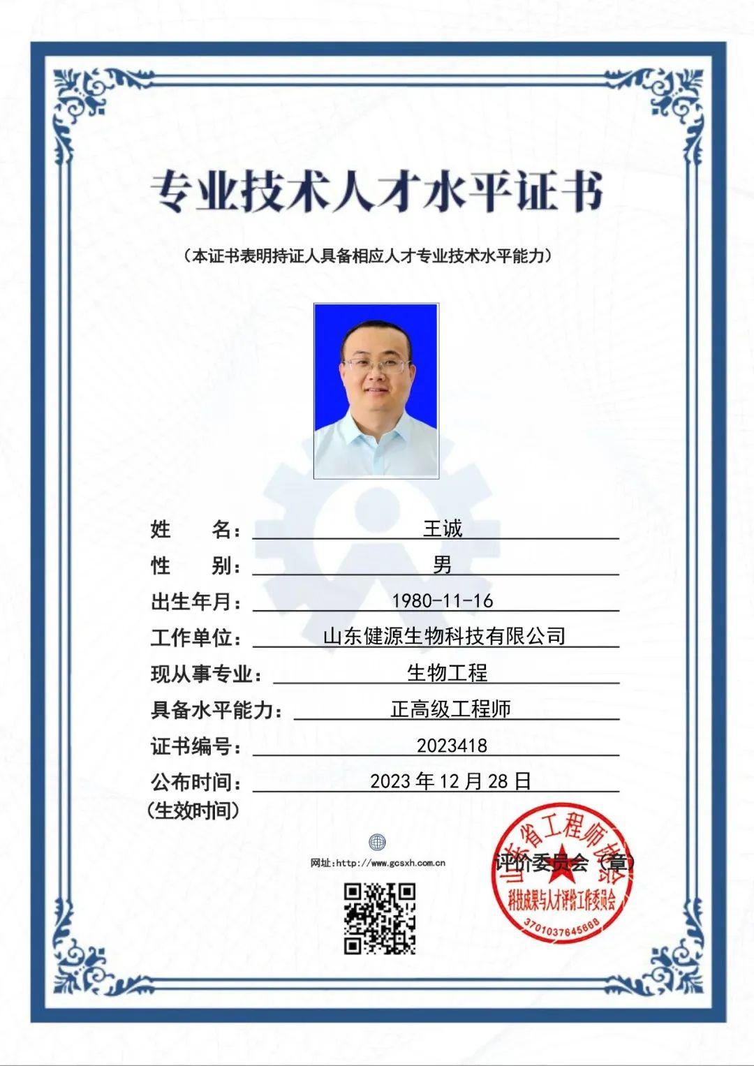 根據(jù)《山東省工程師協(xié)會(huì)人才評價(jià)實(shí)施意見(試行)》和《山東省工程師協(xié)會(huì)人才評價(jià)試行標(biāo)準(zhǔn)》,經(jīng)資格審查和專家評審?fù)ㄟ^,共有51人具備正高級工程師資格、161人具備高級工程師資格,154人具備工程師資格,53人具備助理工程師資格。山東健源生物科技有限公司董事長王誠獲評正高級工程師資格。
